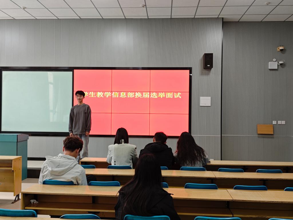 随后,教评中心根据学生日常学习、工作的态度和表现进行了资格审查,并组织评委对教学信息部部长和学院教学信息站站长候选人进行单独面试,最终,新一届学生教学信息员领导团队脱颖而出。