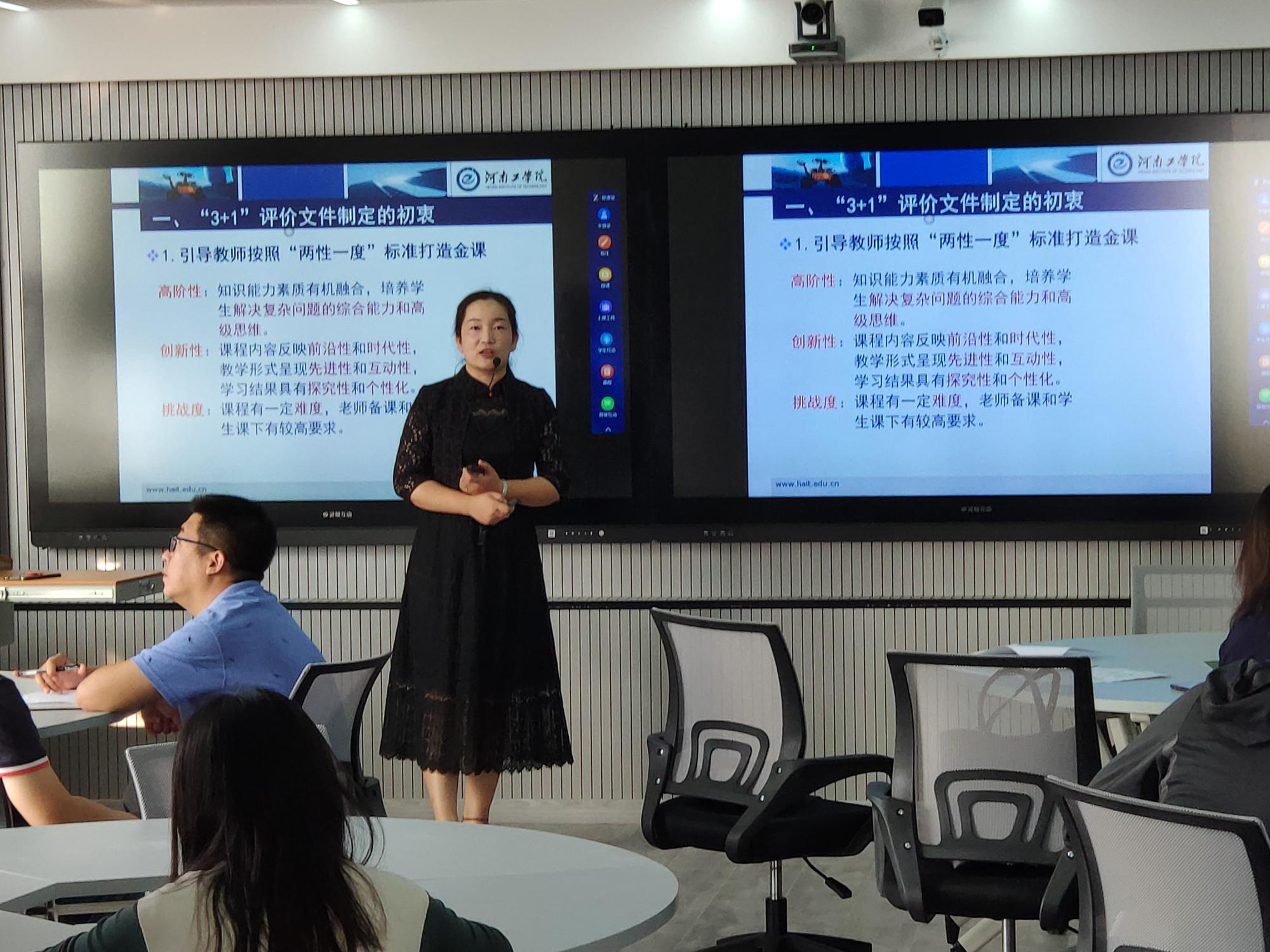 郭祖华从“’3+1’评价文件制定的初衷”、“’3+1’评价文件重要变化点”、“’院(部)评价’实施流程”、“’教学创新评价’实施流程”等四个方面对文件进行了详细解读。郭祖华在解读过程中,根据各院部可能出现的不同情况,列举了多个案例,使得大家都能够结合自己院部的实际情况来对文件进行分析理解。文件解读完后,郭祖华又解答了多名老师的提问,会后又进行了细致的讨论。