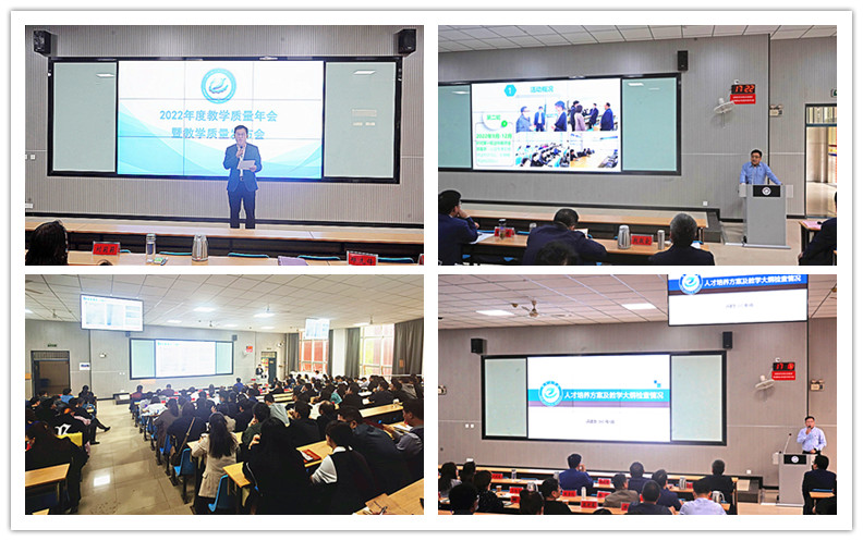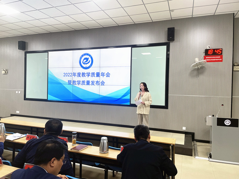 5月11下午,我校2022年教学质量年会暨教学质量发布会在教1楼C108隆重召开。副校长刘莉莉及相关职能部门负责人、各院部教学管理人员、评建办全体人员、2023新进教师现场参加了会议,全校15个教学院(部)的全体教师通过网络直播形式参加了会议。会议由教评中心负责人主持。