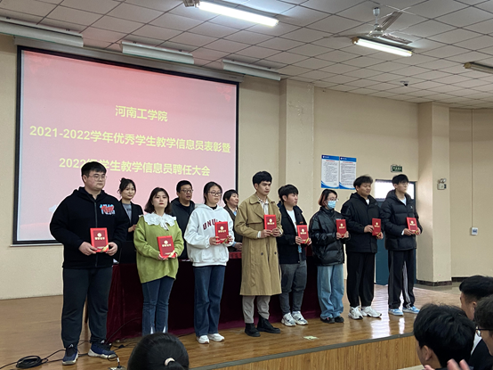 大会在国歌声中拉开序幕。会上,董蕴华宣读了2021-2022学年优秀学生教学信息员名单,王明斐宣读了2022级学生教学信息员聘任名单。随后,为获得“优秀学生教学信息员”荣誉称号的88名学生颁发了荣誉证书,并为2022级学生教学信息员颁发了聘任证书。