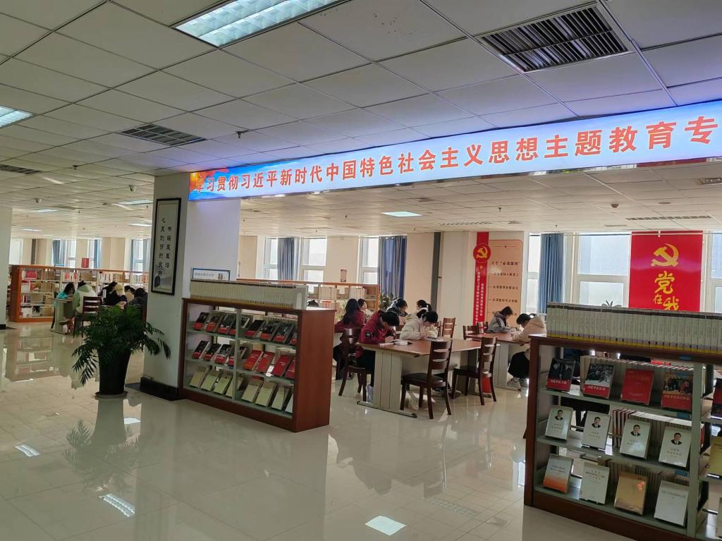 图书馆把三全育人作为落实立德树人的有效抓手,建成“学习贯彻习近平新时代中国特色社会主义思想主题教育”专题阅览区,进一步坚定师生理想信念;利用空间优势,优化功能布局和配套设施,设置电子阅览室、研讨区、朗读亭,休闲阅读区;开辟红色阅览专区、考研专区,为读者打造舒适多元化的阅读环境,满足读者个性化阅读需求。