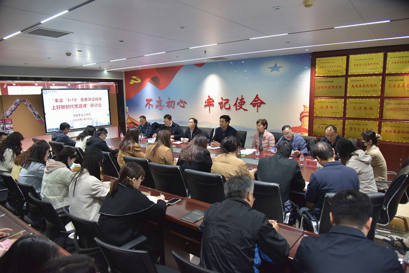 3月18日下午,马克思主义学院在创新楼1202会议室召开“重温‘3·18’重要讲话精神,上好新时代思政课”研讨会。校党委副书记李贵敏,相关职能部门负责人及马克思主义学院全体专兼职思政课教师参加。研讨会由马克思主义学院负责人主持。